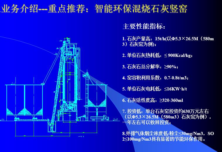 7. 投資低:?jiǎn)闻_(tái)石灰窯投資約630萬(wàn)元左右(以Φ5.3×26.5M(580m3)石灰窯為例),一年左右可以收回投資;